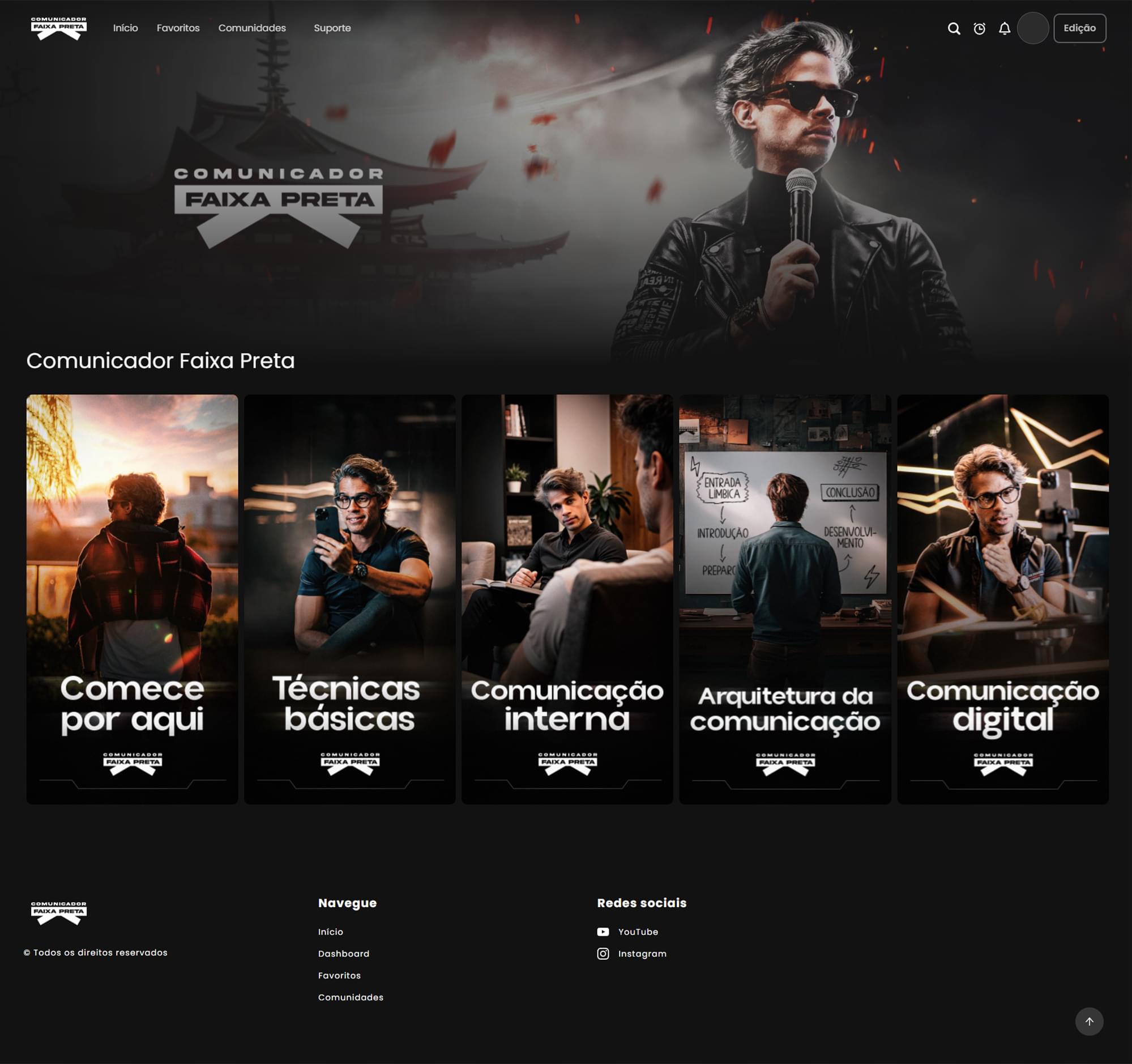 O Comunicador Faixa Preta é a maior comunidade de comunicação e oratória do Brasil. Um programa completo para quem deseja falar com confiança, se expressar com clareza e impactar em qualquer área da vida.